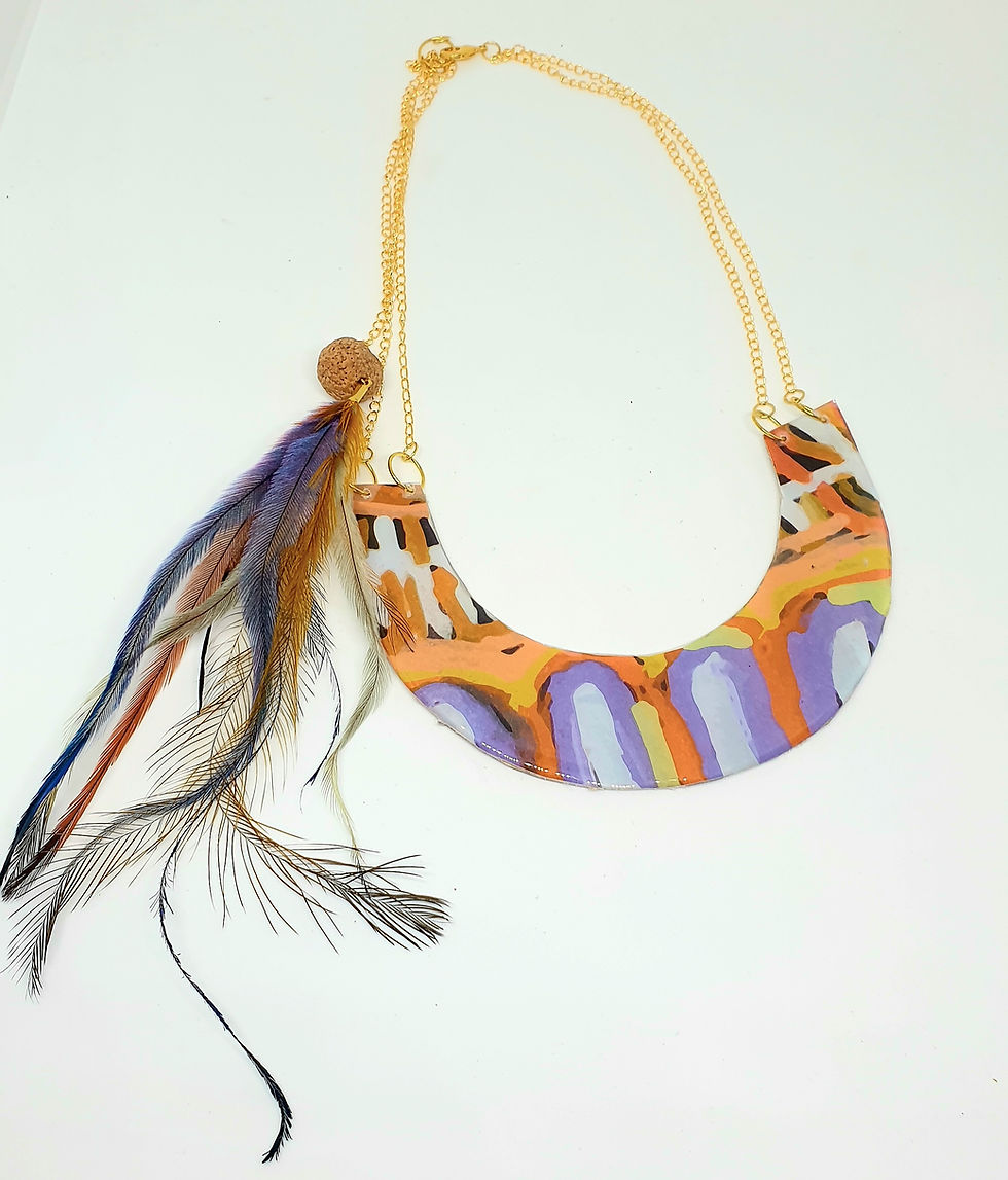 In this Dreaming story, two dog ancestors, a Jampijinpa and a Napangardi, travelled from the west to the east. At Tapu (a rockhole), the two dogs separated. The female dog, Napangardi, went to the south. The male dog, Jampijinpa, went to the north. Eventually he became lonely and howled for Napangardi in the south. She came running to him, and they married each other at Ngarnka. They wore mens and womens marriage headdresses, and Jampijinpa painted himself with white clay for the ceremony. The two dogs continued running east, before arriving in Warlaku (Ali Curung). Many other dogs were living in Warlaku when they arrived. There were many families of dogs, mothers and fathers and children and uncles all living together. Jampijinpa and Napangardi made a burrow to rest in and started a big family of dogs there. They chose to stay in Warlaku and live with all the other dogs. In this way, the malikijarra Jukurrpa (two dogs Dreaming) tells the story of proper conduct in families and marriages.